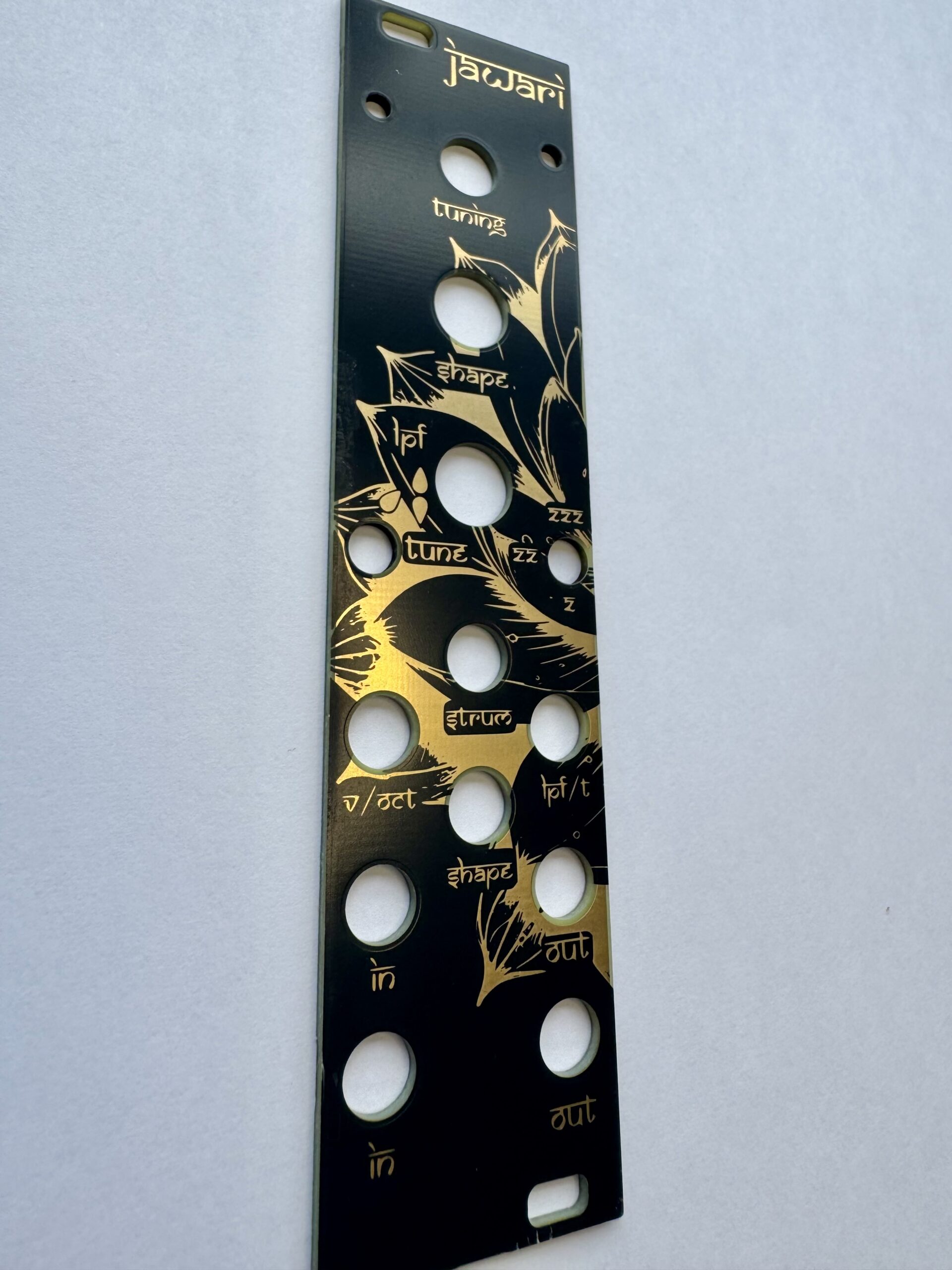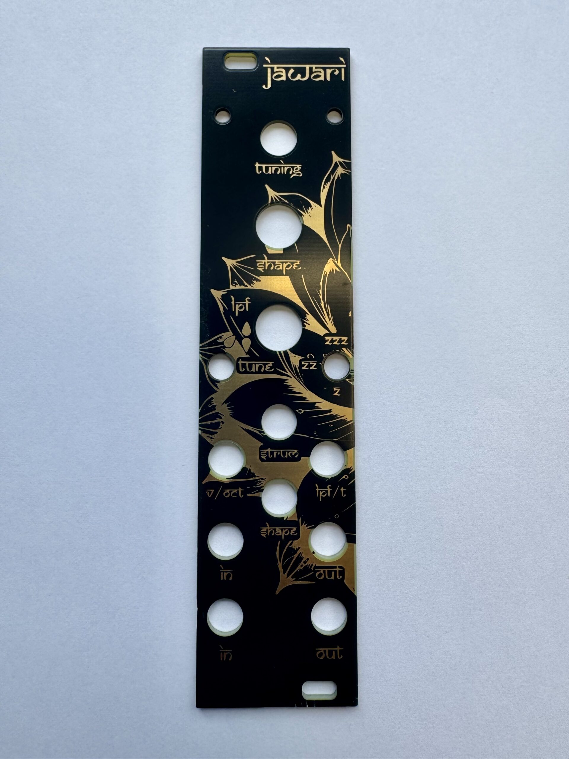 Alternate panel for Noise Engineering Legio, created for the Jawari tanpura machine firmware. WHILE SUPPLIES LAST, order the Seaside Jawari panel and you also get the black and gold version by NEST.